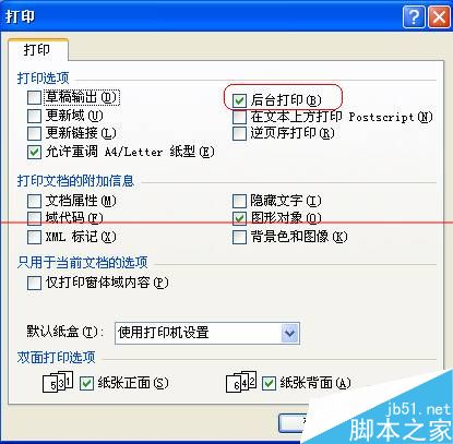 2、解决方法:把“后台打印”的√取消,正常了!点“选项”
