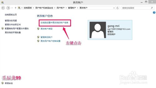 在打开的更改帐户窗口的更改帐户信息下,我们左键点击:在电脑设置中更改我的帐户信息;