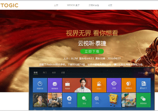 泰捷视频下载地址:http://www.togic.com/livetv.html