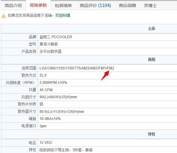 该CPU散热器属于Intel与AMD平台通用的,在查看其详细参数中,可以看到其实完全支持FM2接口的,如下图所示: