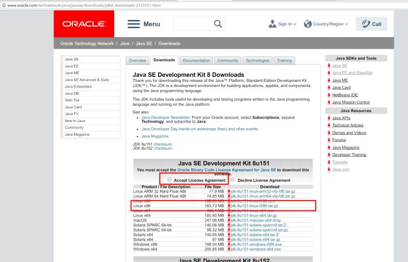 因为我的虚拟系统是32位的,所以我下32位JDK,根据你的情况具体看。x86代表32位系统,x64代表64位系统。