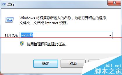 2、进入运行对话框,输入【regedit】命令,点击确定,进入注册表编辑器