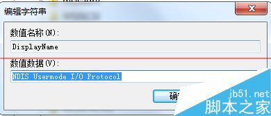 4、然后在右方找到【DisplayName】,查看其值是否为【NDIS Usermode I/O Protocol】