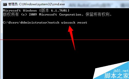 9、然后在命令行输入【netsh winsock reset】,点击回车,重启服务即可(重启电脑)