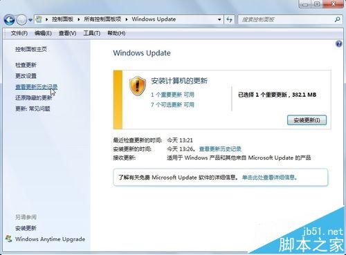 3、在打开的窗口中点击左边的“查看更新历史记录”