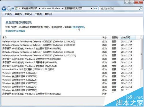 4、点击上方查看“已安装的更新”