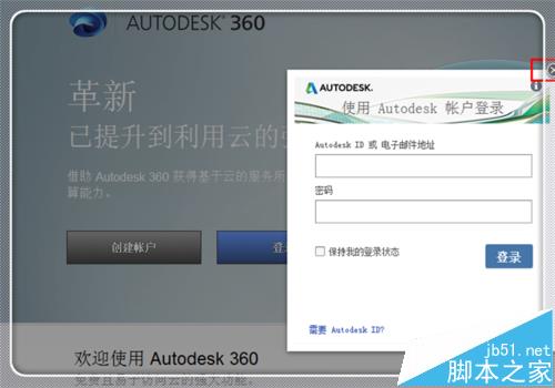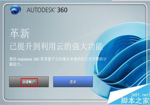 3、在Autodesk 360界面中,点击“创建账户”进行账户的创建,即注册账号。