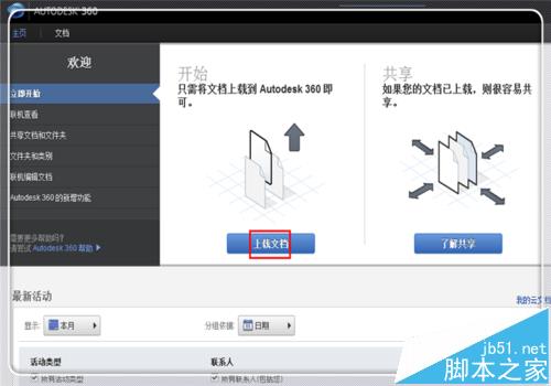 2、调出文档操作界面,点击“上载文档”上传自己打算进行远程操作、或者是进行网页版的CAD编辑操作的CAD图纸。