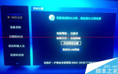 3、第一个部分就是网络连接,点击遥控器的确认键进入网络连接界面,