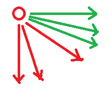 假设,上图中的每个箭头是手指滑动的方向,绿色箭头代表可以拖出抽屉,红色箭头代表不可以拖出(注意,红色箭头也是有x坐标的偏移量的)。即当不可以拖出抽屉时,应触发默认事件,比如垂直方向的滚动等等。