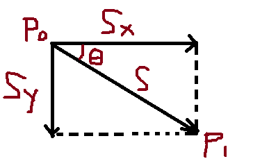 当手指按下触发 touchstart 时,记录初始位置P 0 ;当滑动手指时,触发的第一次 touchmove 时,记录位置P 1 ,我们将P 0 到P 1 的矢量记为S(原谅我这个灵魂画手)