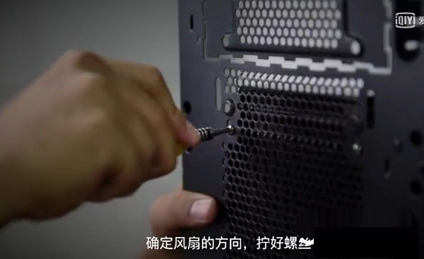 第三步:确定风扇的方向,拧好固定螺丝,如下图所示。