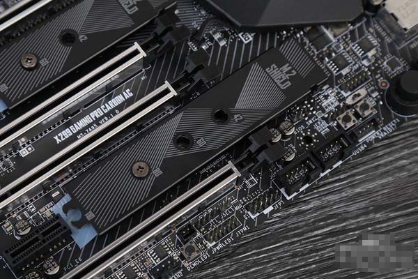 两个M.2 SSD接口都覆盖了M.2 SHIELD,官方说法是能明显降低M.2 SSD在高速读写时所带来的高温。