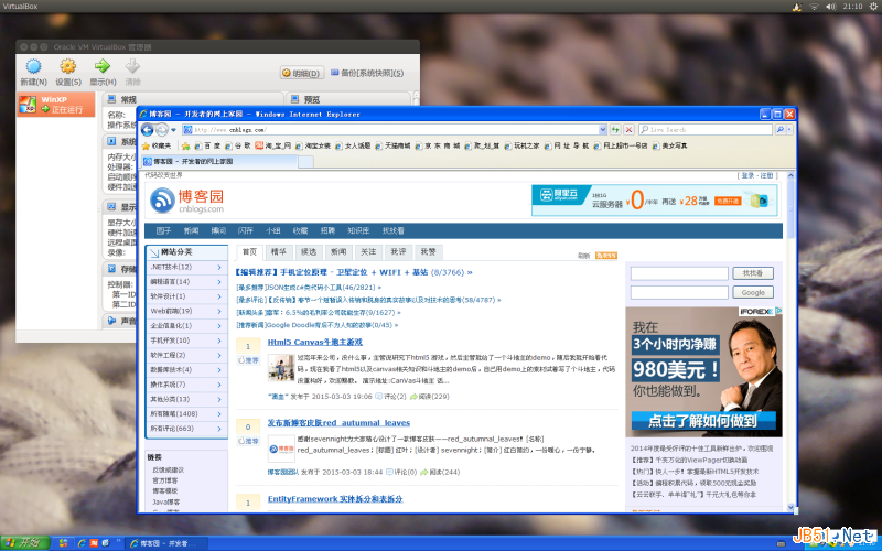 按Host+L键,可以键入无缝模式,如下图,可以看到在Ubuntu系统中,Ubuntu风格的窗口和WinXP风格的窗口共存: