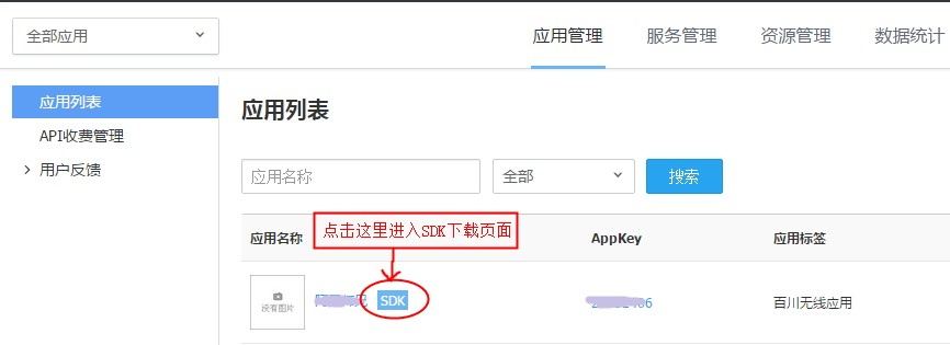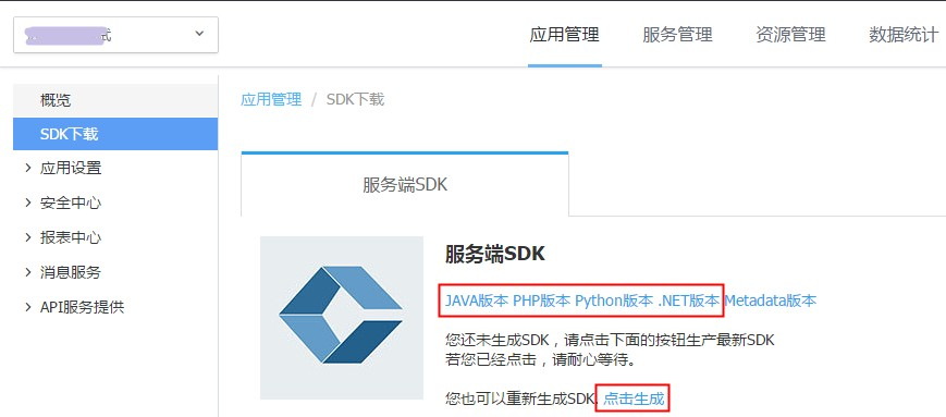 由于应用要先拥有API的访问权限,才能调用此API,所以SDK的下载是与应用相关联的,不同的应用下载到的SDK是各不一样的。