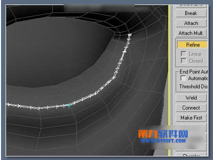 使用"refine"命令添加点,一个重要事项是眼睫毛的中间比外面稠密,因此要添加点,将图形拷贝2次,并参考图放置,第一次要低于原始的眼睫毛并向前一点点,第二次向后一点点,并且要低于原始的眼睫毛。