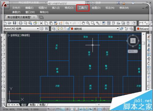 1、CAD各个版本操作基本一致,这里以CAD2014为例。对于简单图形,使用简单的查询就能搞定。具体方法是,打开cad图形,在菜单栏,点击“工具”。