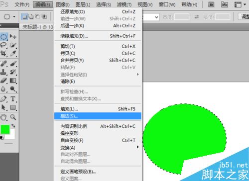 5、画好了之后,我们填充成绿色,填充之后,找到编辑--描边