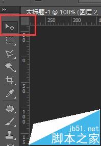 3、我们让方块向右移动20px。按 快捷键 v 键,选择 选择工具。见下图,点击我们需要移动的方块,按住shift + -> (即键盘上向右的箭头),移动俩次(即每次移动的是10px)。这时我们可以放大图片来对照标尺,发现方块已经移动到了720px的位置