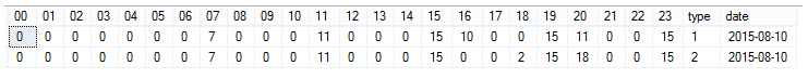 ) t PIVOT( SUM(num) FOR h IN ( [0], [1], [2], [3], [4], [5], [6],