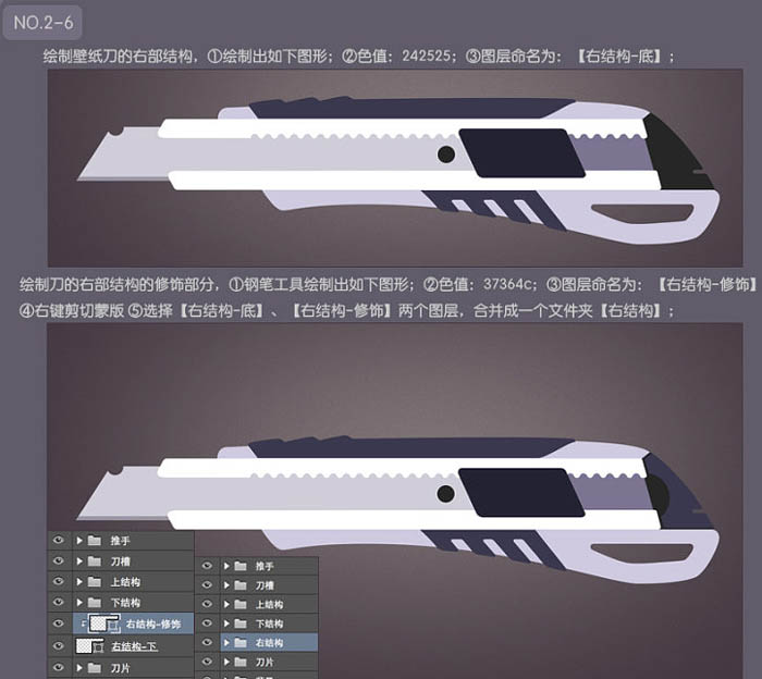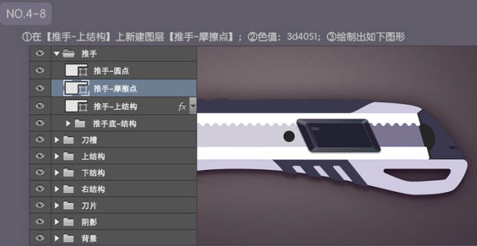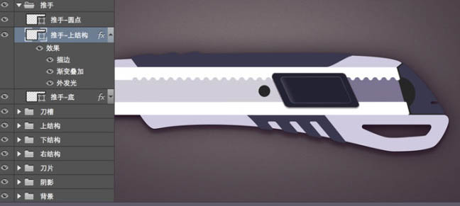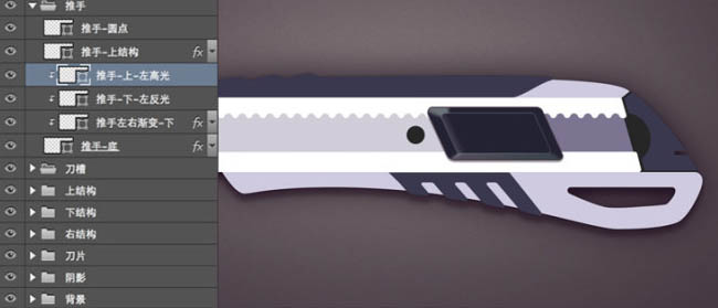 6、细致刻画壁纸刀上部结构: