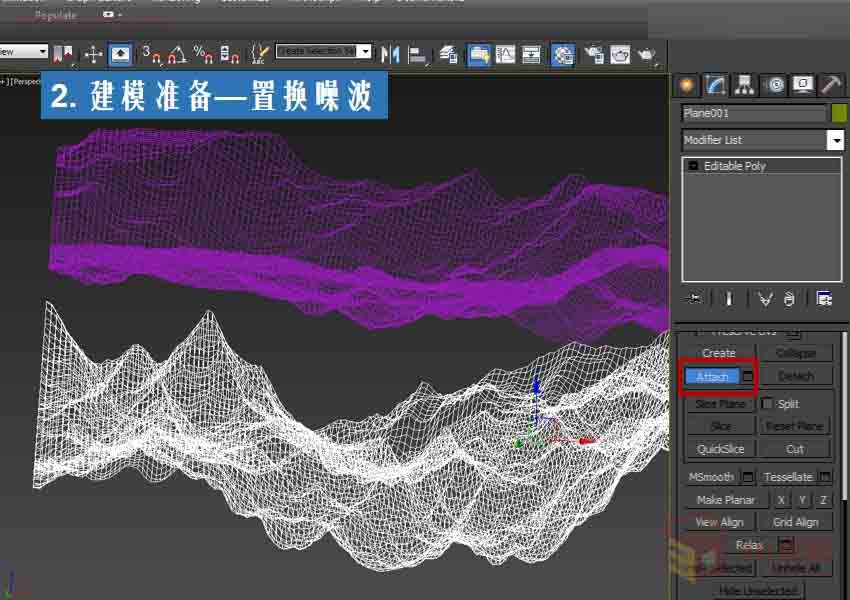 第六步:转成poly,将他们然后焊接(Attach)在一起。