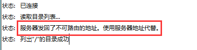 而在windows下使用FileZilla测试并没有问题。仔细看了下FileZilla的日志,发现有一行