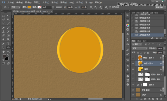 5.制作第二个(太阳分三个图层,椭圆工具变形)