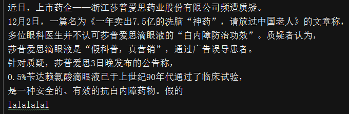 莎普爱思滴眼液是“假科普,真营销”,通过广告误导患者。