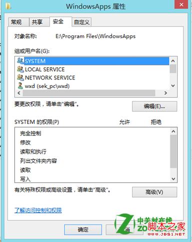 Metro应用程序安装在“%systemRoot%\Program Files\WindowsApps(隐藏文件夹)”下,打开需要添加账户夺取权限。