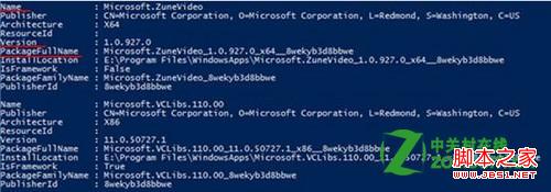或者也可以在“所有程序”中打开“Windows PowerShell”,输入“Get-AppxPackage”,可以查看到Metro界面下所有程序的版本信息,文件夹位置等。