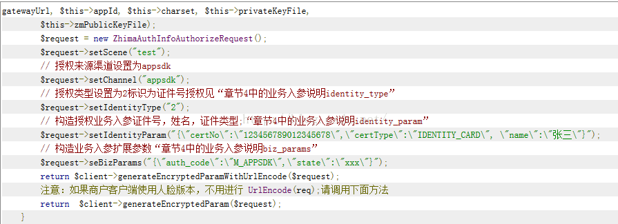// 构造授权业务入参证件号,姓名,证件类型;“章节4中的业务入参说明identity_param”