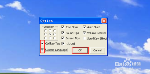 3、打开提示灯小版面后,接着勾选左侧的2个选框在点击OK键。