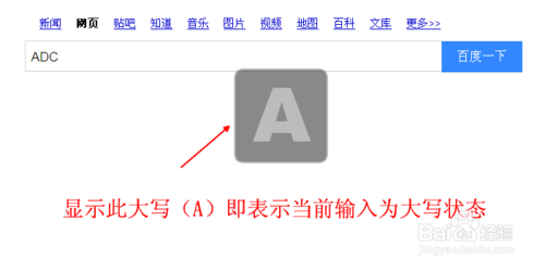 4、当您需要使用输入法时,按capslock键就会在屏幕中间出现一个大小的 A 字这就代表现在是大写的输入状态。