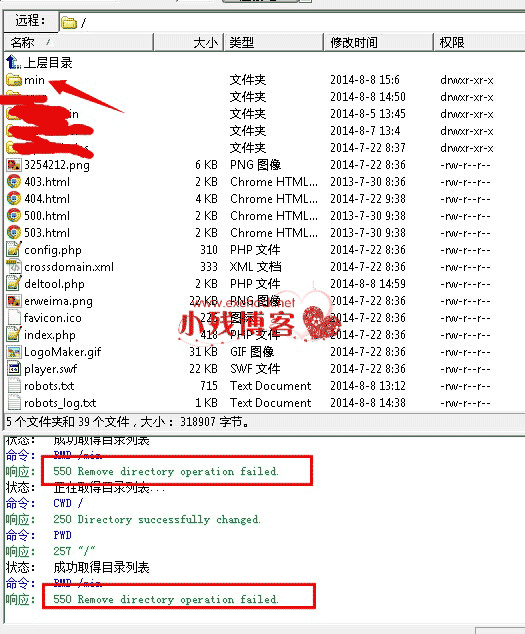 FTP工具软件会提示Permission Denied(没有权限),或者 550删除目录操作失败。今天小残在操作FTP的时候就出现了这种问题。