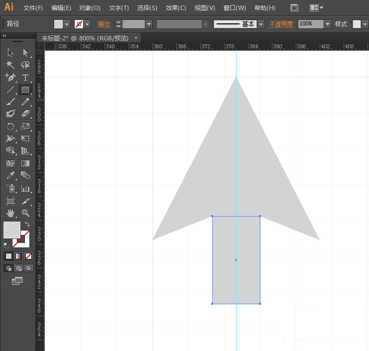 3、接着添加两个对称的锚点,并且同时往上移动。用矩形工具画出一个长方形。然后对所有图形进行联集。