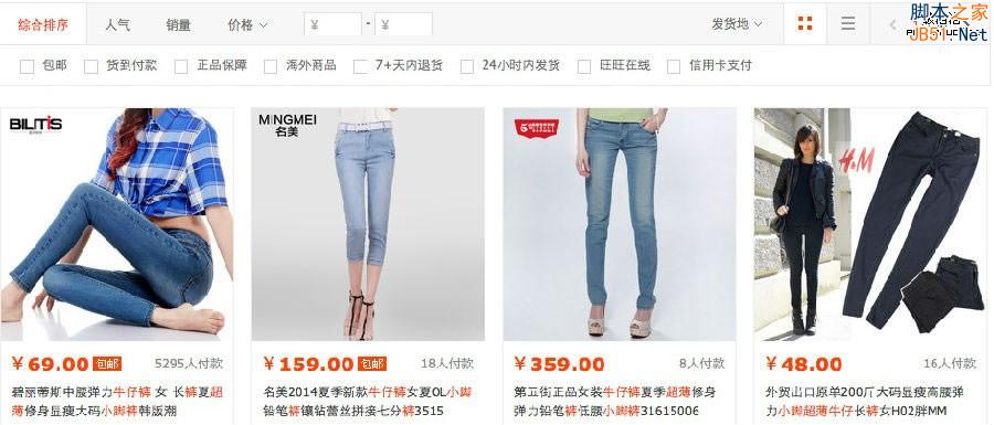 举个例子:你的牛仔裤才买了30件,评分也一般。你用了一个热门词“韩版牛仔裤”,这个时候,你很难排序靠前。还有人想抢豆腐块,更不可能了。但是如果你用其他词,说不定就可以。例如:“小脚超薄牛仔裤”。豆腐块的上商品的销量才8件,你30件,一定有可能超过它。
