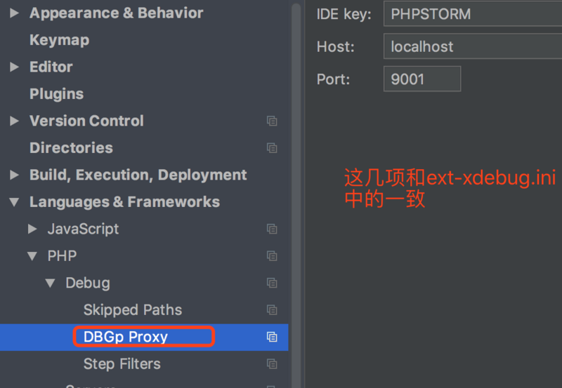 配置如下: [xdebug] zend_extension="/usr/local/opt/php70-xdebug/xdebug.so" xdebug.remote_enable = On xdebug.remote_handler = dbgp xdebug.remote_host= localhost xdebug.remote_port = 9001 #这个端口不要被占用即可,可以自行指定 xdebug.idekey = PHPSTORM xdebug.remote_autostart=1 xdebug.remote_log=/var/tmp/xdebug.log