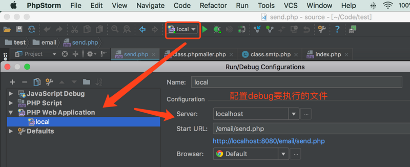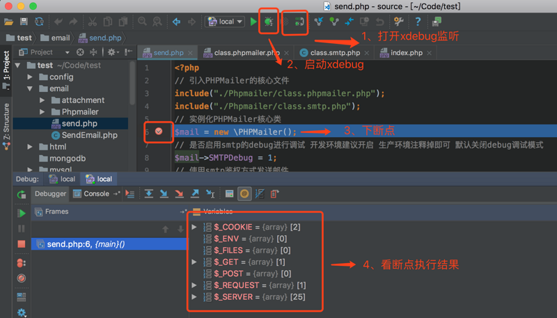 我的调试地址:http://localhost:8080/email/send.php?XDEBUG_SESSION_START=15550