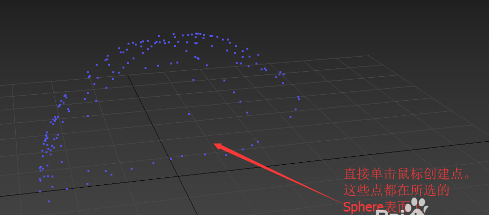 4、然后我们可以隐藏球面模型,也可以不隐藏。直接单击鼠标,会在拾取表面的位置上创建顶点。