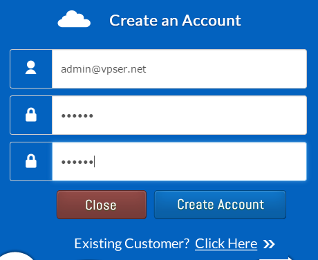 3、在方案配置页面选择你要购买的配置,点击对应配置后面的"Buy Now",会弹出创建账号界面,填写上你的邮箱和要设置的密码,如下图:
