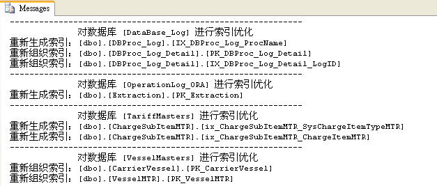注:我们根据实际的环境,修改@Reorganize_Fragmentation_Percent 和 @Rebuild_Fragmentation_Percent 值。