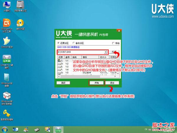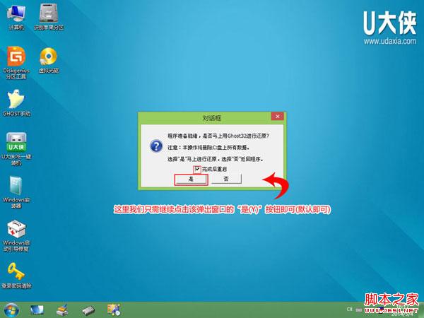 【第三步】进入U大侠Win8PE系统后运行“U大侠PE一键装机”工具,安装GhostWin7系统!