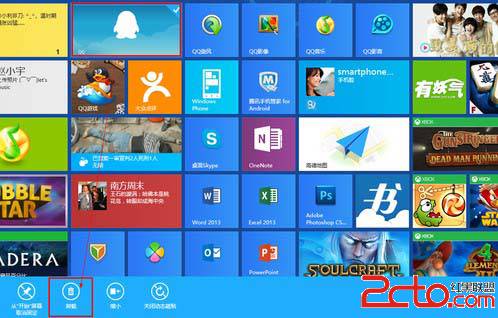 如果想要卸载的Win8应用没有固定到“开始屏幕”,那么我们可以在“所有应用”中找到它。右键点击开始屏幕的空白处,如果是触屏的话则是从底部向上滑,这样在弹出的工具栏中就能看到“所有应用”的入口。