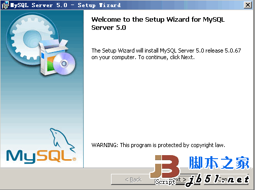进入X:\Server_Tools文件夹,双击mysql-essential-5.0.67-win32.msi;