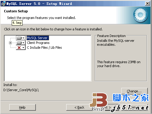 点击“Change”更改MySQL安装目录