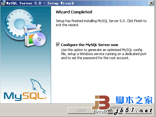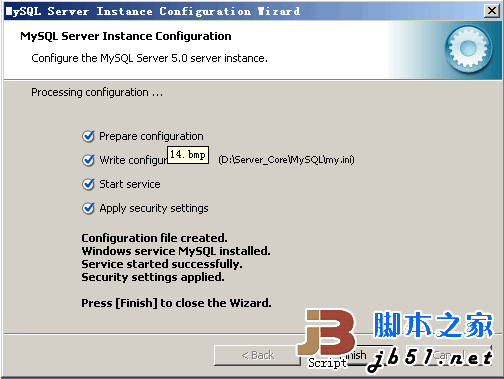 待文件复制安装完毕后,进行MySQL设置界面,单击Finish。