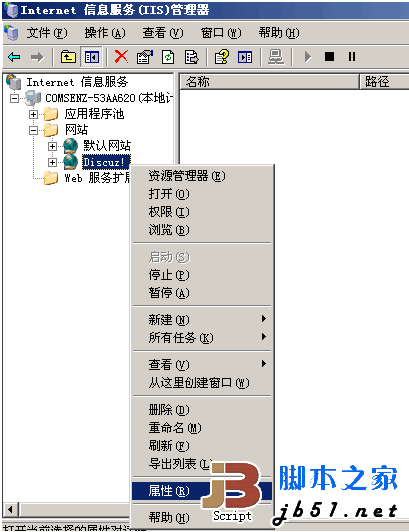 打开刚刚建立的网站属性
