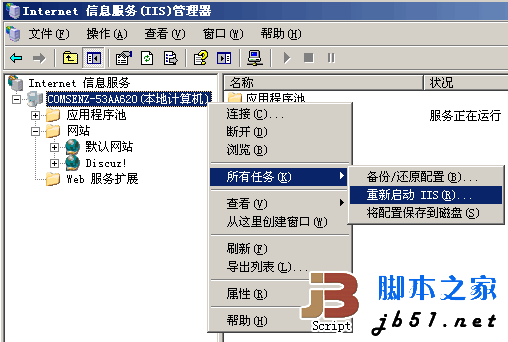 重启IIS服务