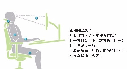 1、坐姿。保持舒服的坐姿,手臂自然下垂,不要将整个手臂的重量集中压迫在手掌上,肘关节的高度就是键鼠摆放的高度。